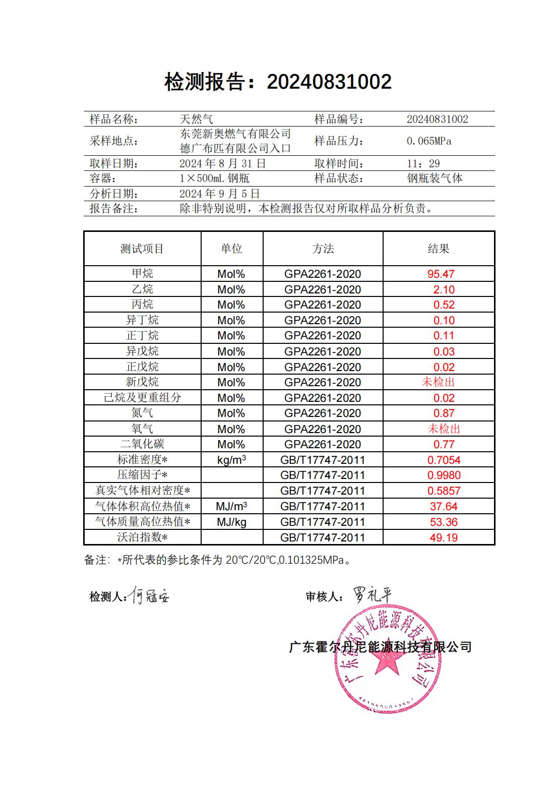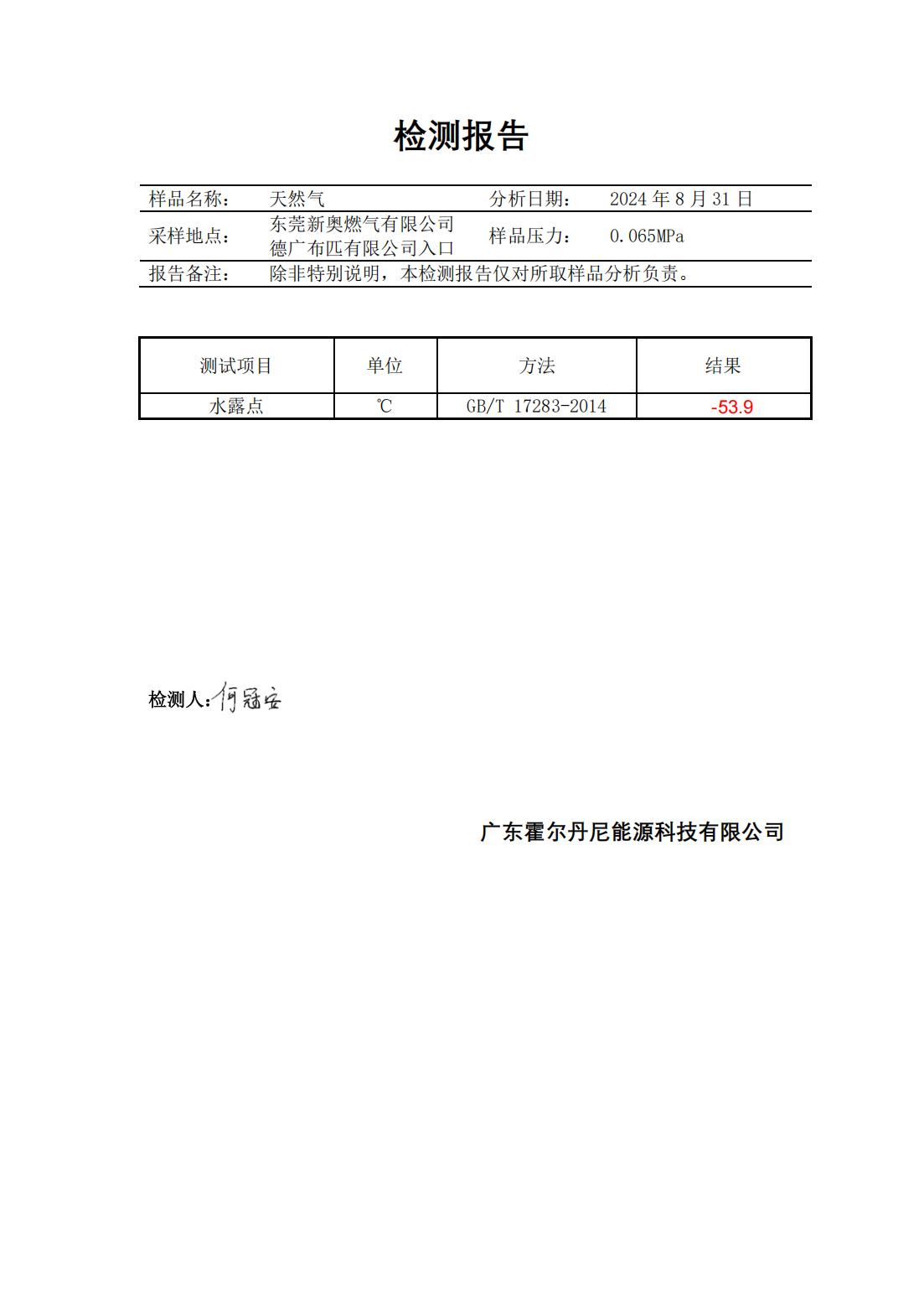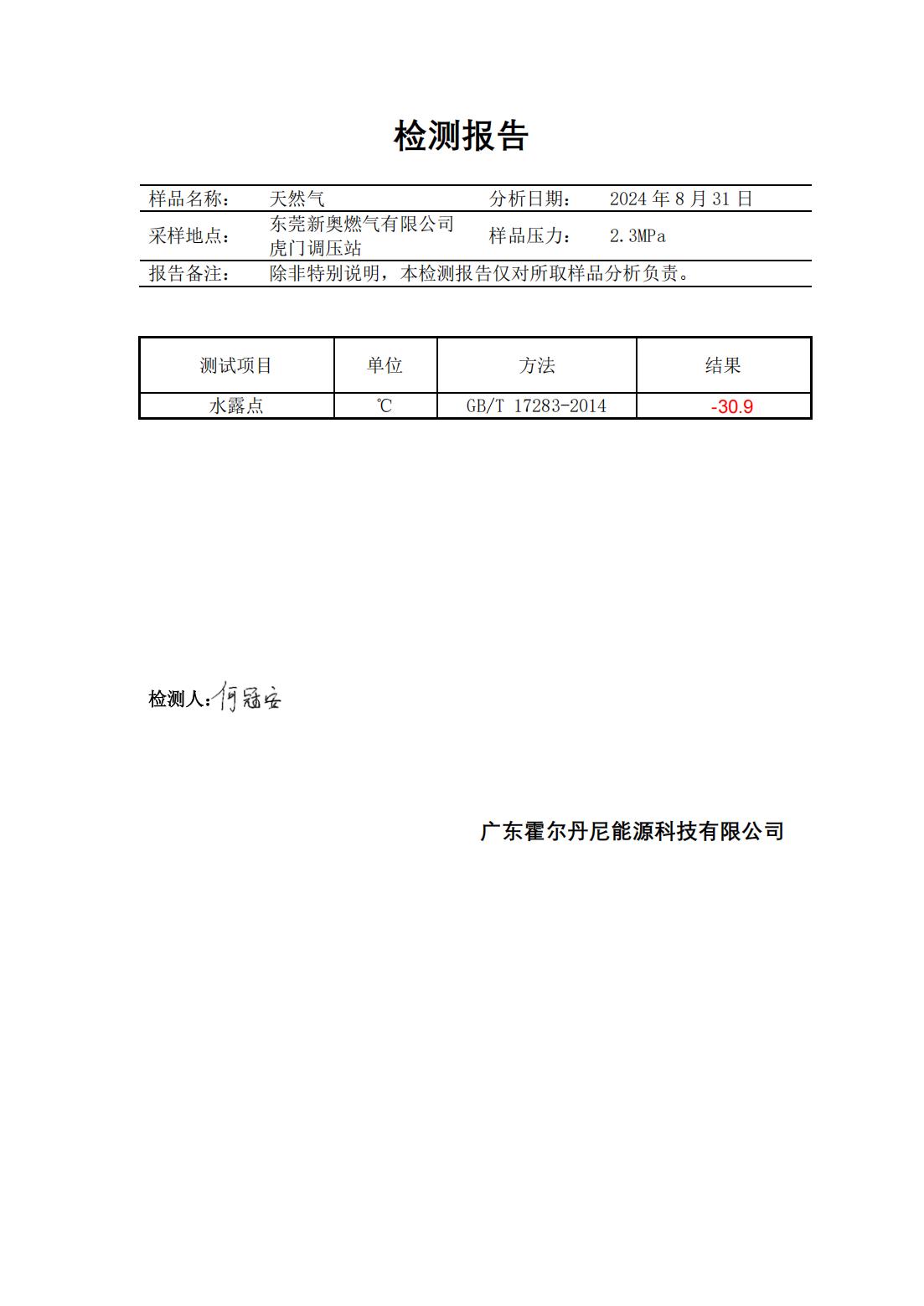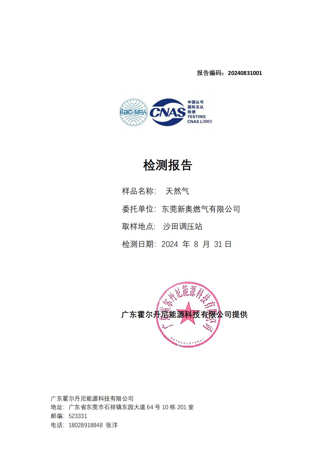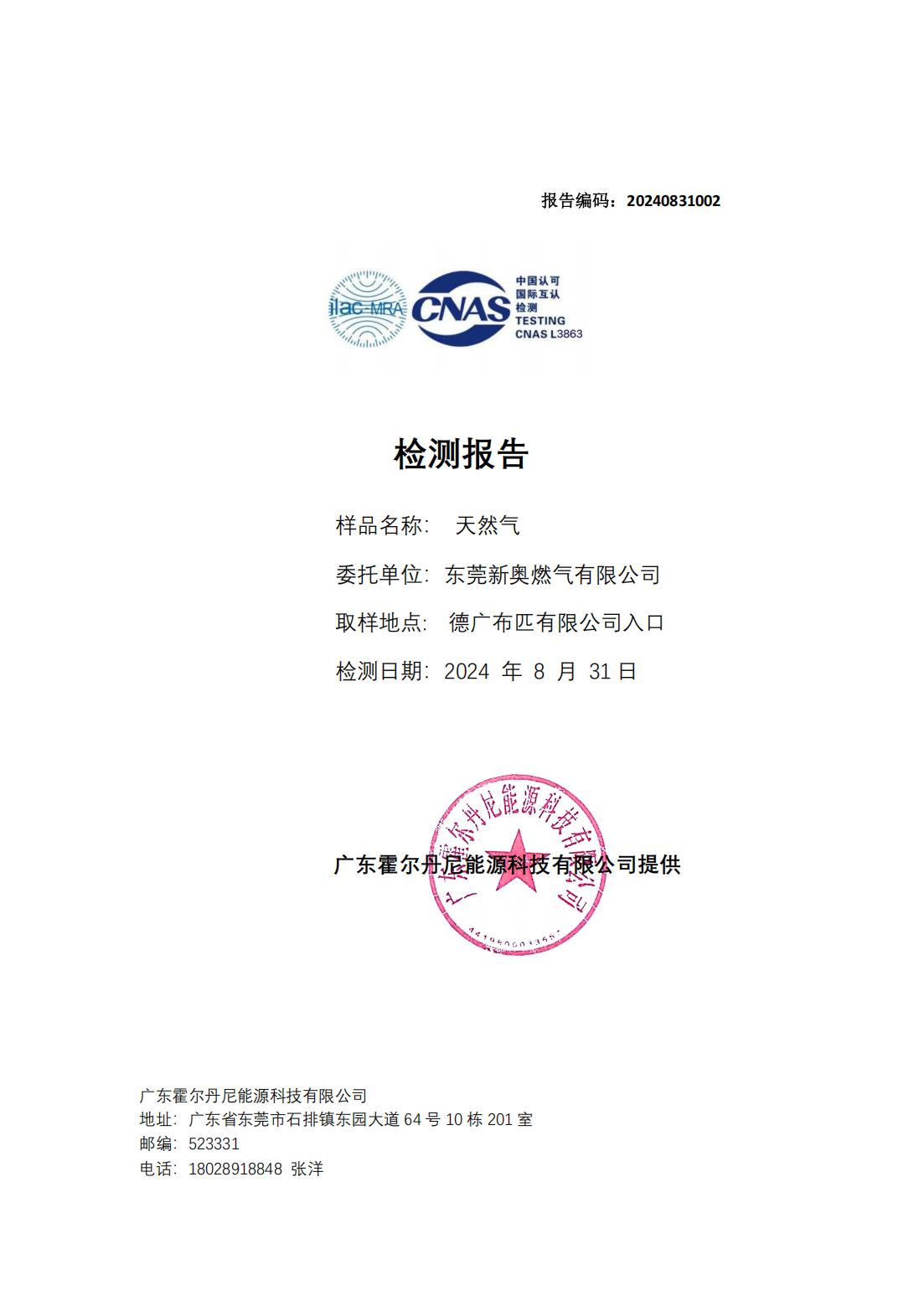 東莞新奧天然氣氣質報告公示