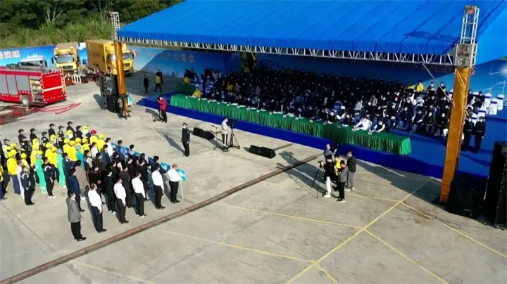 為了進一步提升燃?xì)馐鹿蕬?yīng)急處置政企、部門間的聯(lián)動響應(yīng)效能,增強應(yīng)急救援隊伍實戰(zhàn)能力,為全市城鎮(zhèn)燃?xì)鈶?yīng)急救援工作提供科學(xué)指導(dǎo)。12月7日,在廣東省住房和城鄉(xiāng)建設(shè)廳指導(dǎo)下,由東莞市政府主辦,東莞市城市管理和綜合執(zhí)法局、東莞市松山湖區(qū)管委會、東莞新奧聯(lián)合承辦的2022年東莞市城鎮(zhèn)燃?xì)馔话l(fā)事件救援演練在東莞市松山湖實驗中學(xué)舉行。廣東省住房和城鄉(xiāng)建設(shè)廳二級巡視員廖江陵、東莞市副市長劉旺先、市政府二級巡視員黃福泉、東莞市城市管理和綜合執(zhí)法局局長劉永定、相關(guān)市直單位及鎮(zhèn)街(園區(qū))主管領(lǐng)導(dǎo)、燃?xì)馄髽I(yè)負(fù)責(zé)人等約130人到場觀摩。