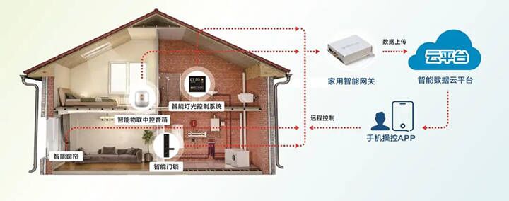 智能家居系統包括智能攝像頭,智能中控屏,語音音箱和智能門鎖等,通過智能中控面板實現對燈光、窗簾的自動控制,同時有語音控制和場景化控制等多種模式。結合智能家居APP,實現手機對家居不同場景需求的遠程控制,實現現代化人居生活的舒適體驗。