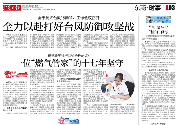 《東莞日報》:東莞新奧社群網(wǎng)格長程麗紅:一位“燃?xì)夤芗摇钡氖吣陥允?/span>